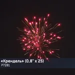 1. Множество золотых ниспадающих нитей (парча) и красные звезды. 2. Краснобелая мерцающая сфера (пион). 3. Множество золотых ниспадающих нитей (парча) и синие звезды. 4. Красно-зеленая мерцающая сфера (пион). 5. Красочная концовка. ЗАЛП: Зеленофиолетовая сфера (пион) и облако треска (трещащий дождь).