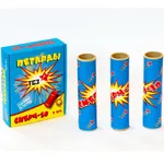 Данный вид петард является примером настоящего "импортозамещения": наконец-то российские пиротехнические предприятия освоили производство не только бенгальских свечей и хлопушек, но и мощных петард! Петарды под маркой "Смерч" производят на Троицком Снаряжательном Заводе (г. Сергиев Посад, Московская обл.) Внешне они довольно сильно отличаются от всем привычных китайских петард. В первую очередь корпусом. Он необычно твердый и окрашен в яркий цвет, в целом петарда выглядит необычно и напоминает ... хлопушки! Однако такая ассоциация не должна вводить в заблуждение: это совсем не детские игрушки. Петарда взрывается с оглушительным грохотом, она очень мощная. Петарды расфасованы в коробки по 3 штуки.